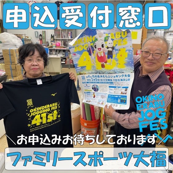 どちらのお店でも、ジョギング大会オリジナルTシャツの見本を置いています。サイズ等気になる方も大丈夫♪ ぜひ各窓口までお越しくださいませ~☆