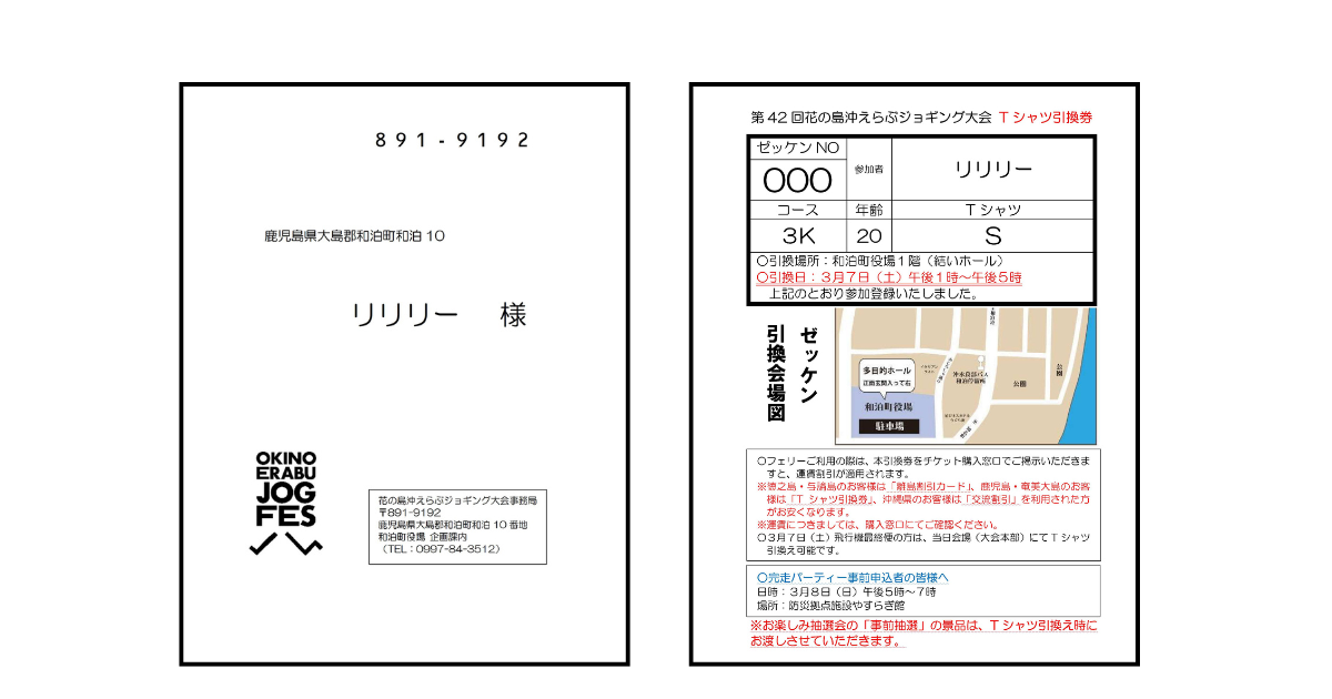 ⚠️大会記念Tシャツ(ゼッケン)の引換えには、このハガキが必要となりますので、当日まで無くさないように保管しておいてくださいね😌