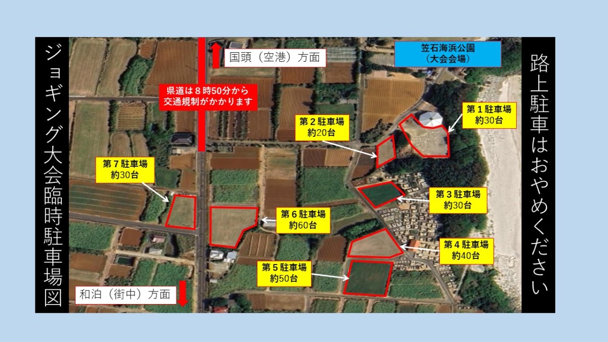大会会場(笠石海浜公園)へのアクセス・臨時駐車場について